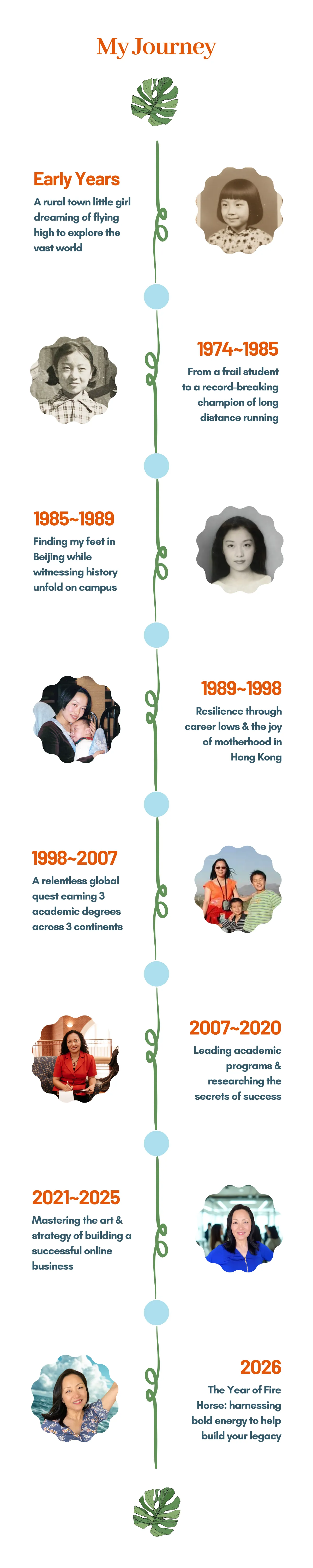 My Journey: My journey began with a dream to fly high — the very inspiration behind my Chinese name, which led me from rural China to a global academic career. I've always been a dreamer, from imagining myself as a pianist at age eight to striving to be a better educator than the ones I had as a teenager. These dreams led me to earn advanced degrees from from Beijing, Hong Kong, Sydney & Virginia, but the path wasn't always smooth. As a woman of color & an educator, I’ve known the pain of being underpaid, undervalued, and lost in a classroom where my impact felt limited.